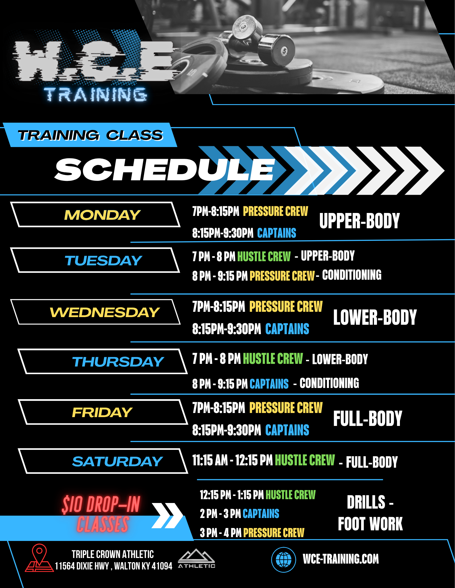 CLASS SCHEDULE JOIN A CLASS TODAY HUSTLE CREW - ELEMENTARY HUSTLE CREW - ELEMENTARY PRESSURE CREW - MIDDLE SCHOOL PRESSURE CREW - MIDDLE SCHOOL CAPTAINS - HIGH SCHOOL CAPTAINS - HIGH SCHOOL